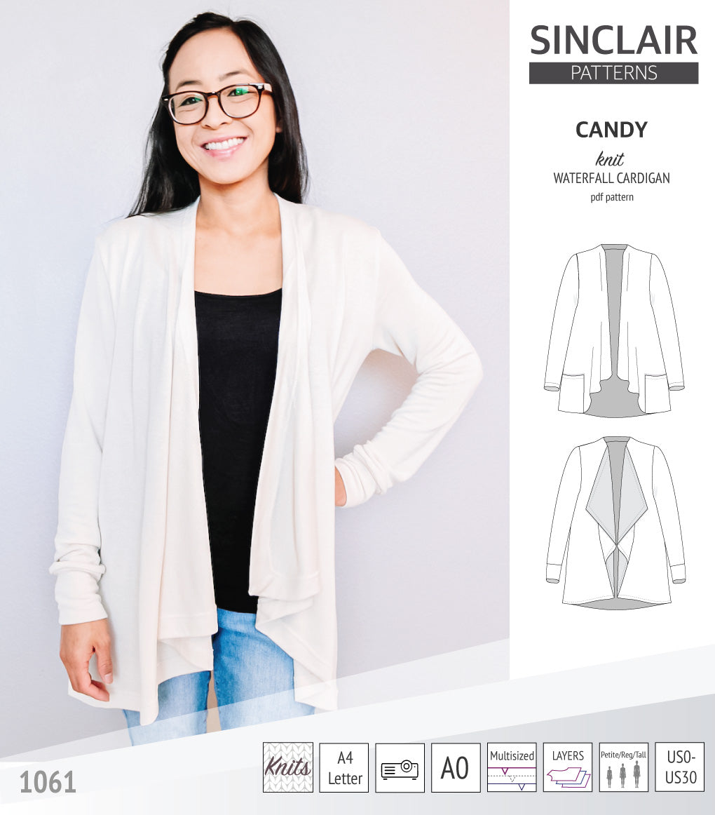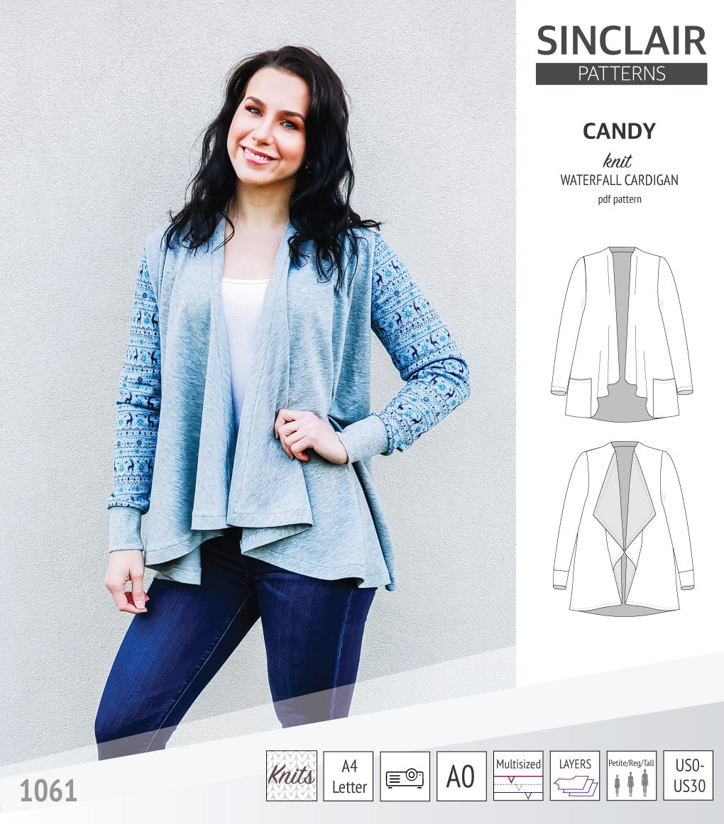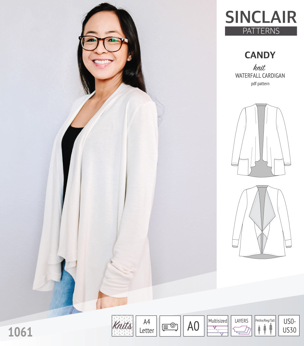 Pdf sewing pattern Candy waterfall cardigan by Sinclair Patterns