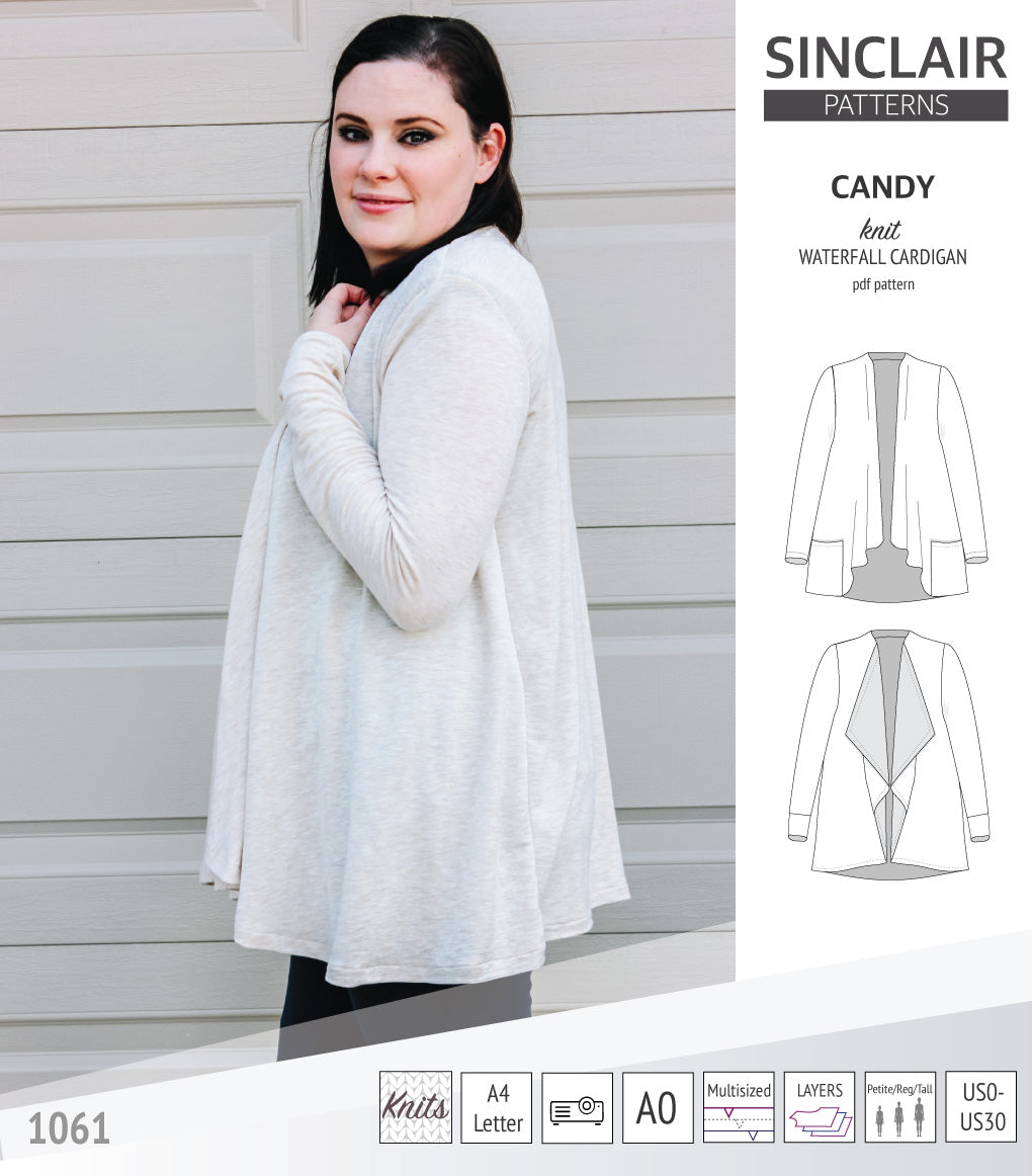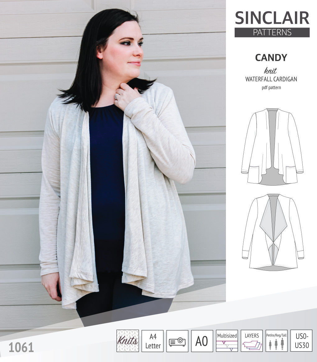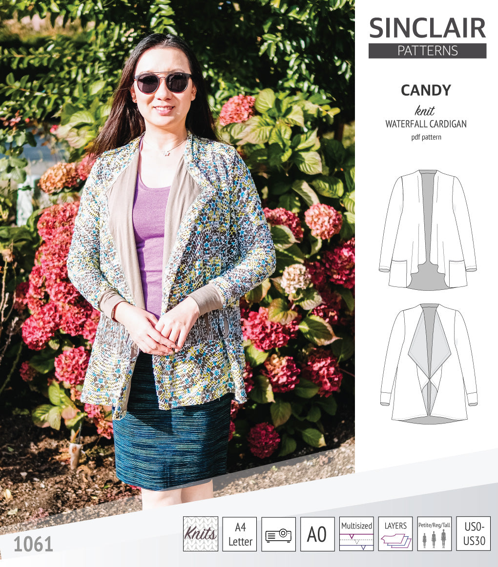 Pdf sewing pattern Candy waterfall cardigan by Sinclair Patterns