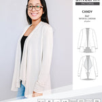 Candy is a great versatile cardigan. Comes together easily and possibilities for different looks are so many, depending on the view and the choice of fabric . It’s and easy relaxing sewing project , very happy with this pattern!
