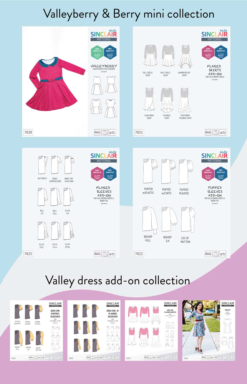 S7023 Add-on flared sleeves for Valleyberry dress and Berry tee