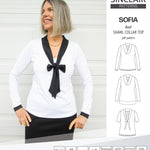 Featuring: fitted around the bust and semi fitted around the waist and hips classic knit top finished with a shawl collar or a bow tie with a regular or high modesty panel. Offered with short hemmed or banded sleeves, 3/4 hemmed sleeves or long sleeves hemmed or finished with narrow cuffs. The hip length bottom hem can be finished with a regular hem or with a band.